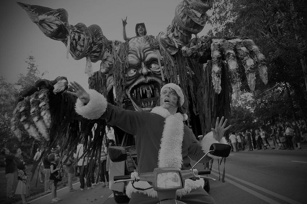 The inaugural event of Atlanta's international theatre, 7 Stages' annual Christmas celebration overflowed from the stage into the streets with themed after-parties and a show-stopping presence at the notorious Little Five Points (L5P) Halloween Parade via massive animatronics.